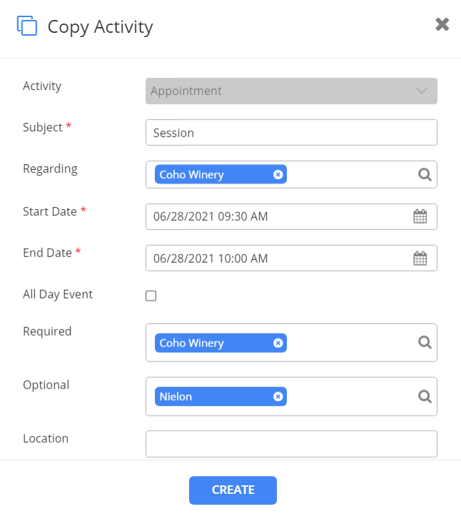 After clicking on the Copy button, the Copy Activity section will open up. If you want to change anything in the activity you can do it. After the configurations, click on the “Create” button to create a new activity.