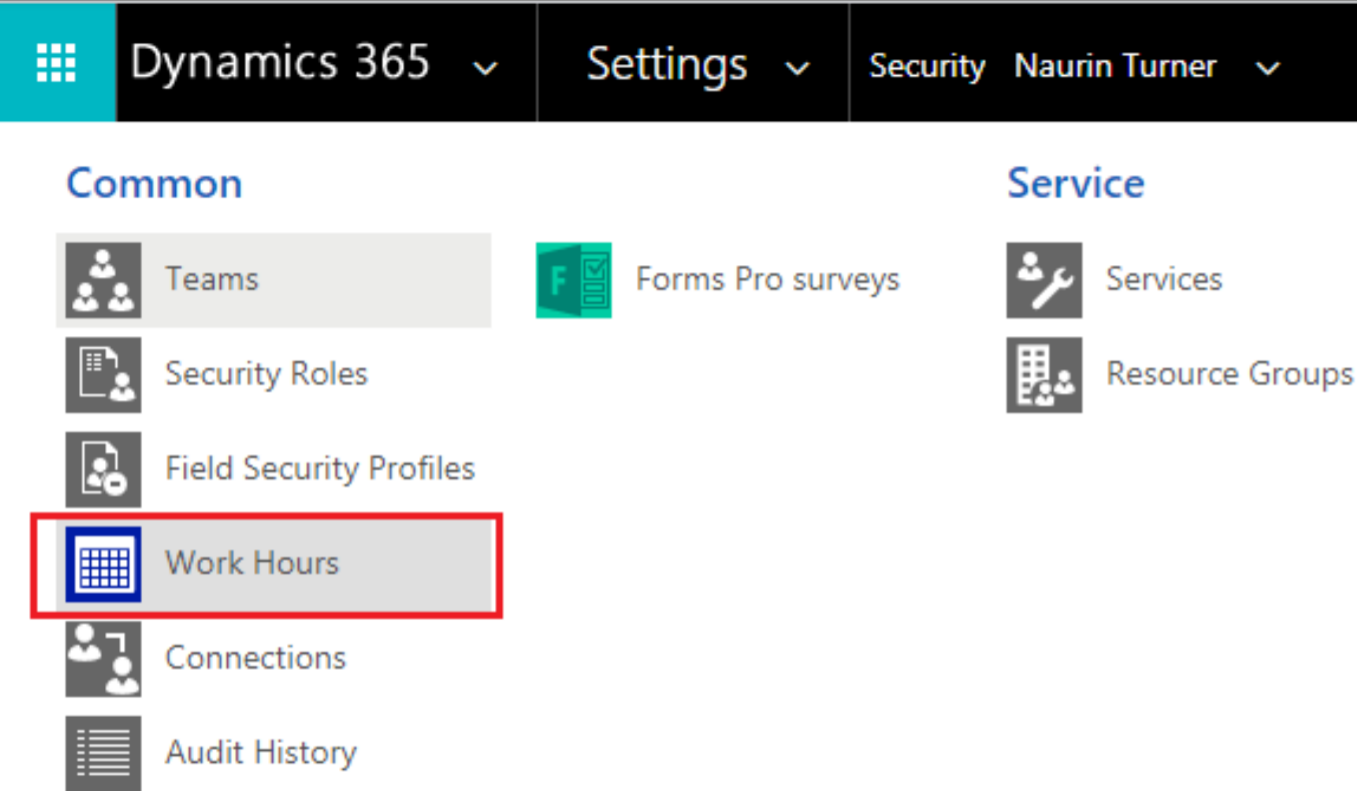 To set and edit the working hours in CRM, navigate to Advanced Settings ➤ Security ➤ Users ➤ Select the user for which you want to set working hours.