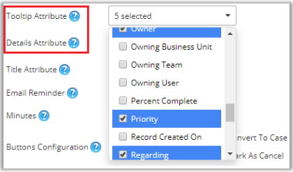 Tooltip Attribute: You can select the tooltip attributes from the list of different attributes to be included in the activity tooltip that appears on hovering the activity in the calendar.