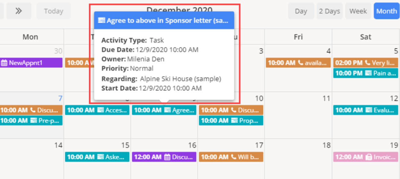 Hover the mouse on the activity, then the activity details can be seen in the tooltip view.