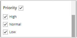 Now to view the activities as per the priorities, navigate to the “Priority” section. Priority section has 3 categories which are High, Normal, and Low. Check the checkbox beside the priority.