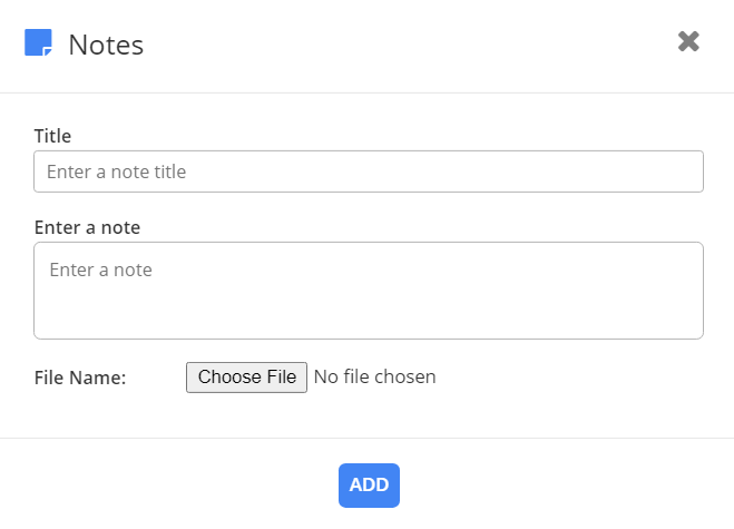 After you click on the Notes icon, add a Title to your Note, type your Note in the box, and you can also add an attachment with the Note if you want. Now click on Add to add the note to the activity.