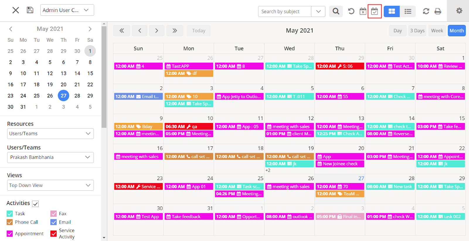 After clicking on the “Share” icon, the dialog box will open up where you can select the user or team from the look up records box. After selecting the “User”, click on the “Save” button to share the calendar. You can also select multiple users and teams for sharing calendars.