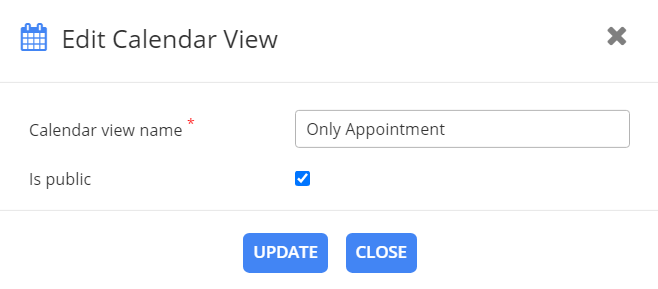 On clicking on the “Edit” icon, you get to update the Calendar Name and select if the calendar Is Public or Private