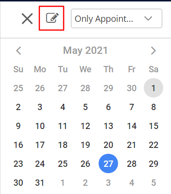 Users can use the Saved Calendar Feature by clicking on the icon in the box as shown above. After clicking on the icon, a dialogue box will open up with a dropdown named “Calendar Views” to check and edit the calendars from the list.