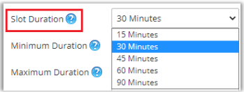 - Select any one of the views and select the Slot Duration. There are options like 15, 30, 45, 60, and 90 minutes in the Slot Duration.