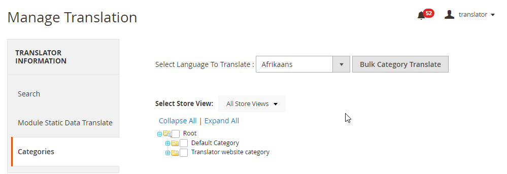 After the above configurations click on the “Bulk Category” button to translate the categories.
