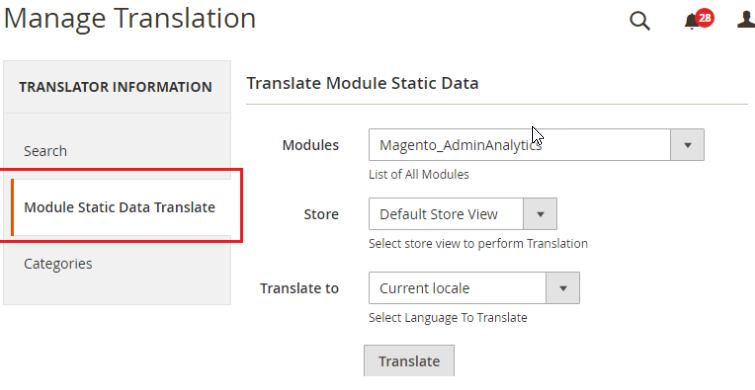 Navigate to the Appjetty Translator ➤ Manage Translation ➤ Module Static Data Translate, you will land on the Manage Translation page.
