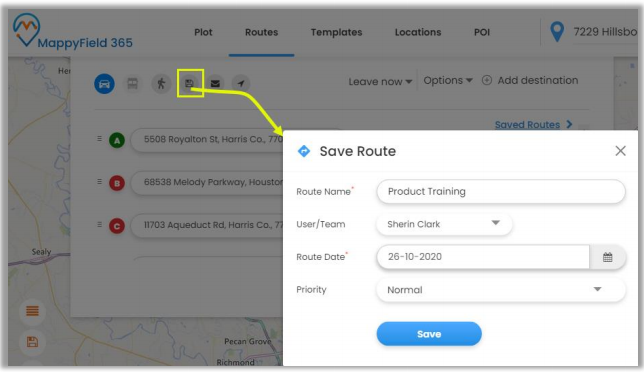 • Now click on the Save icon on the top to save the route.