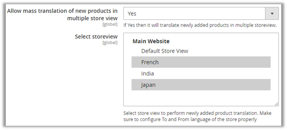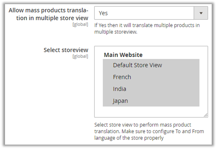 Enable Translate in all Store view: Select ‘Yes’ to perform translation in all store view. It will translate all products with category.