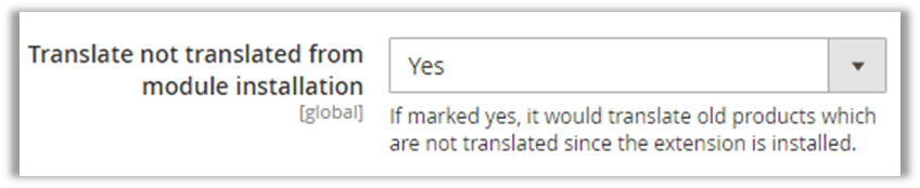 Translate not translated from module installation: By enabling this option, the old products that are not translated yet even after the extension is installed, will be translated.