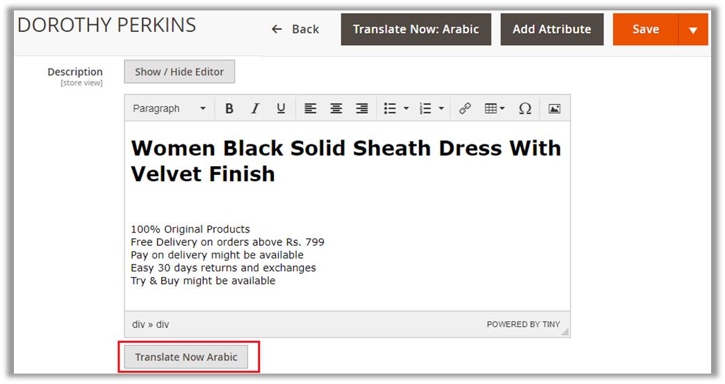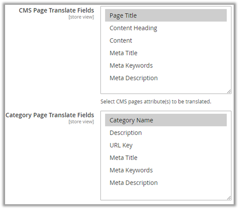 Admin can choose fields that are to be translated for Products, CMS Pages & Categories. [7]