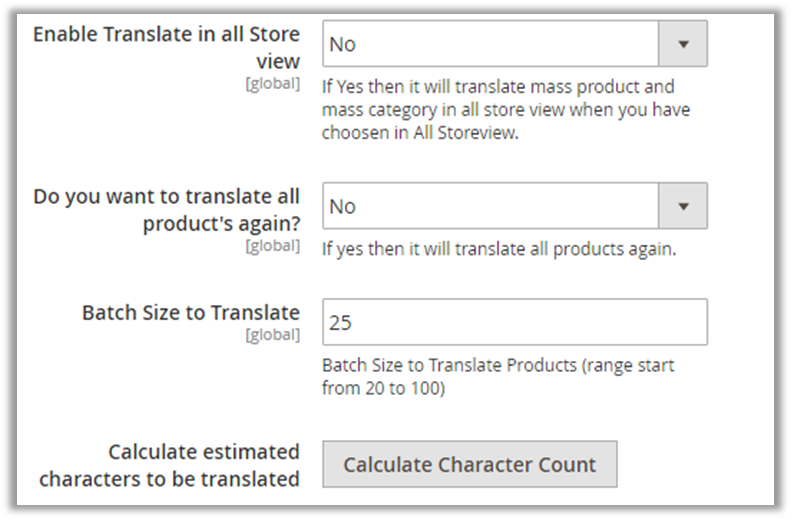 Batch Size to translate: Enter the number of products to be translated at a particular time.