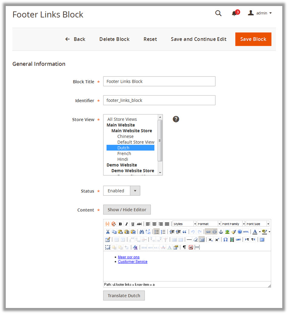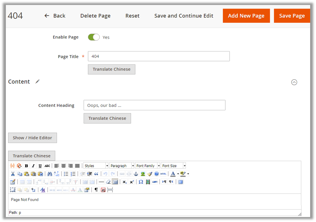 Admin can translate Page Information, Content, and Meta Data of the CMS Page.
