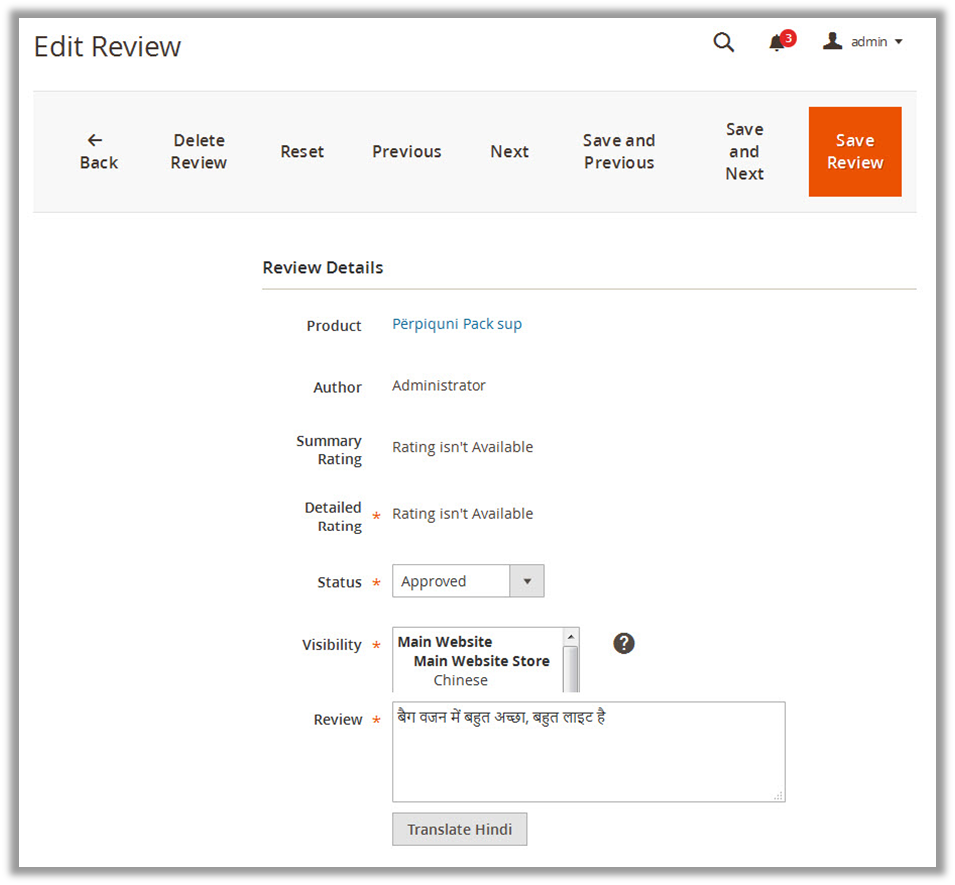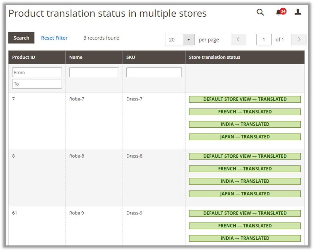 By clicking on View Detail, it will take you to the translation detail page, which contains store wise translation status of the products. [3]