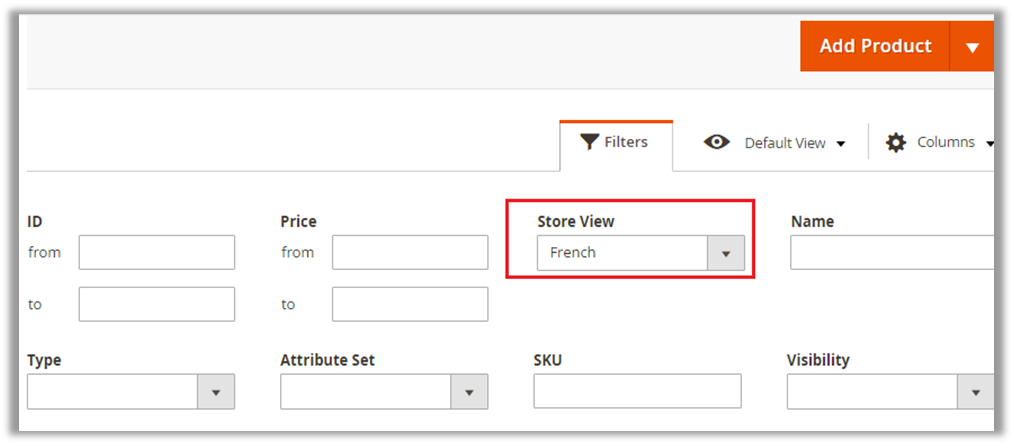 From the product listing page, click on the ‘Filters’ option to translate the product(s) by selecting a specific store. [2]