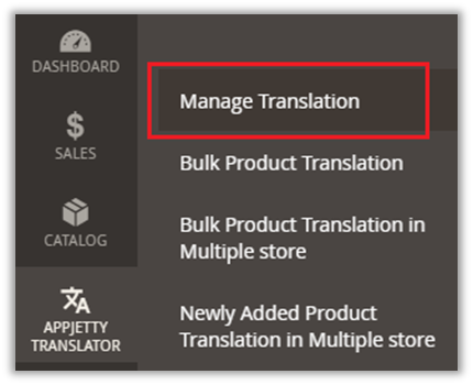 By clicking on “AppJetty Translator” from the Magneto navigation pane, you can manage bulk translation and check the translation processes.