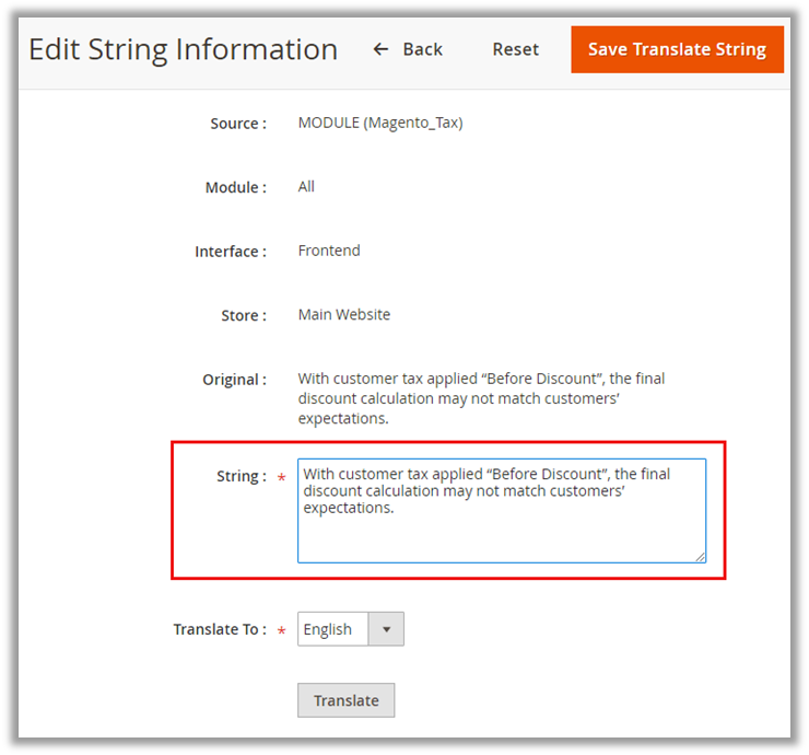 Once it gets translated, that translated string is shown within the string section from where you can again edit the translated string. [3]