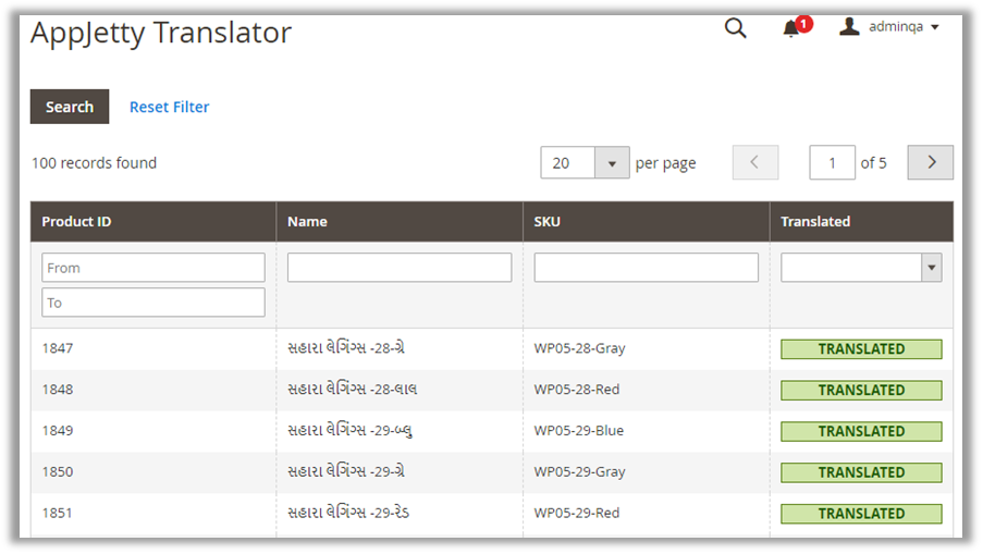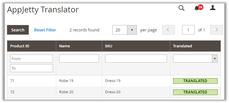 Here, you can view a list of all the translations of newly added products as configured from AppJetty Language Translator (Store -> Configurations). [2]