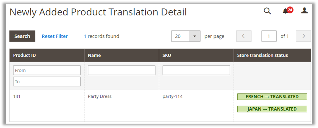 To view the status of the newly added products, go to APPJETTY TRANSLATOR -> Newly Added Product Translation in Multiple stores. [1]