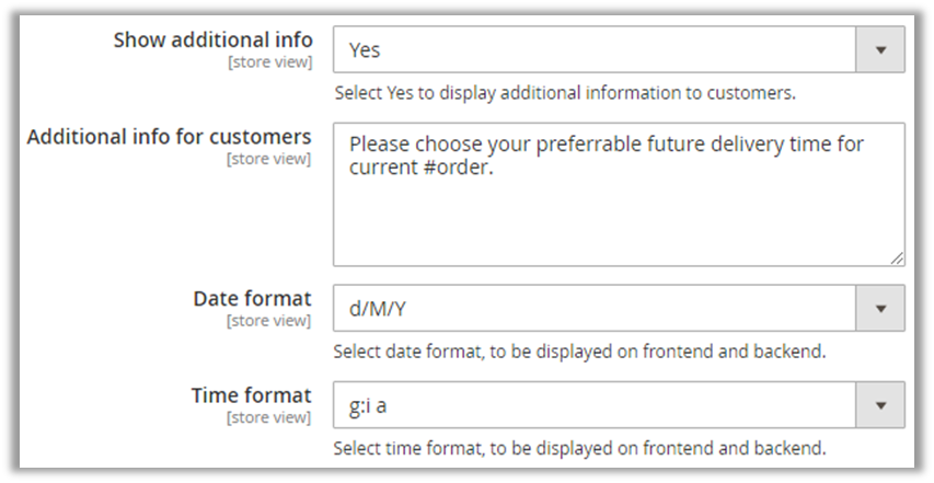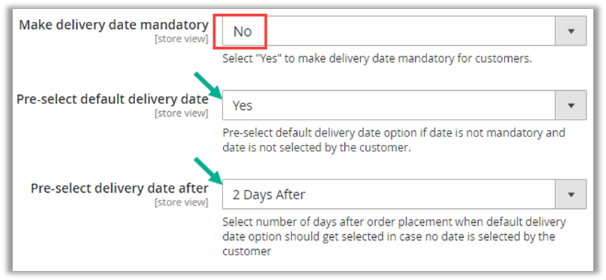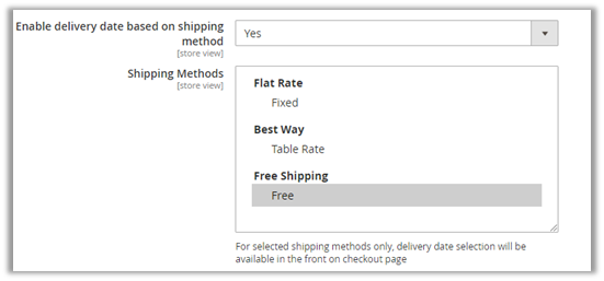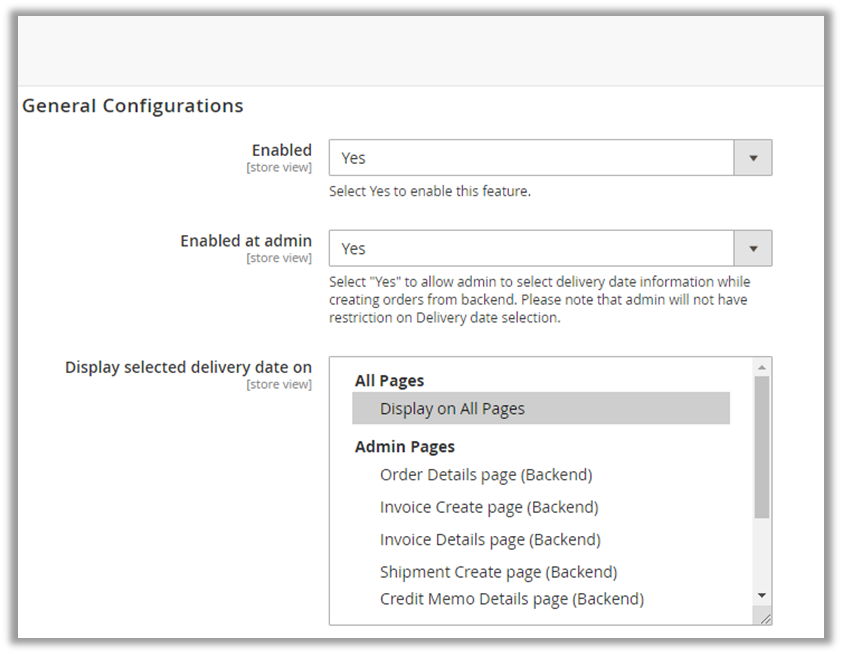 Enabled: Select ‘Yes’ to enable the Delivery Date extension. The extension is disabled by default.