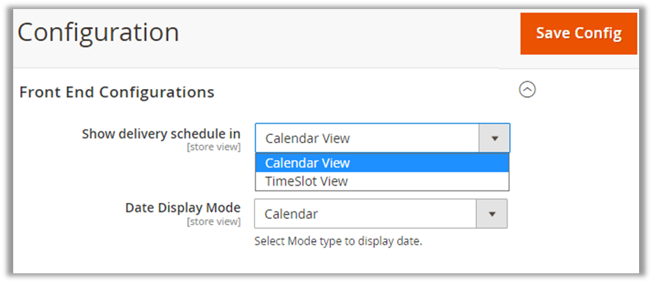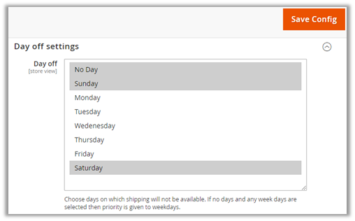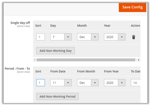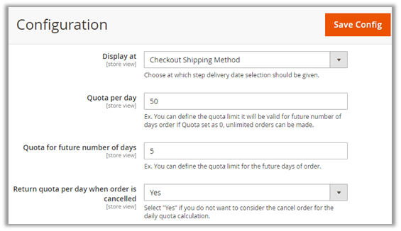 When you enter and save the key it will be verified on our server and you can select the websites where you need to use the Delivery Date Scheduler extension. Click the ‘Save Config’ button after making your selections.