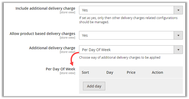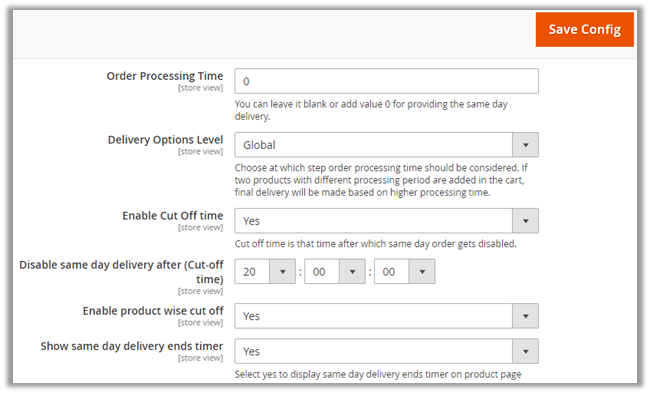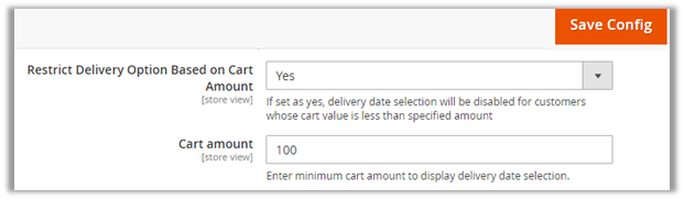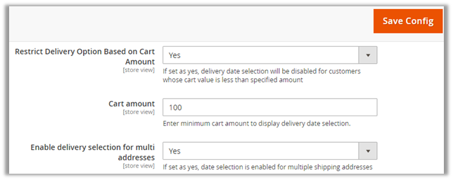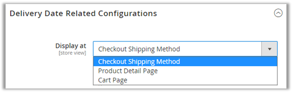 Display At: Select page option on which you want to provide selection of delivery date. It can be either on the Checkout Shipping Page, on the Product Detail Page, or on the Cart Page.