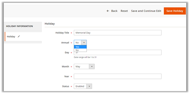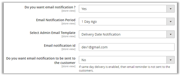 Enabled at Admin: Select ‘Yes’ to let admin select the delivery date. This selection will be done at the time of creating orders from the backend.