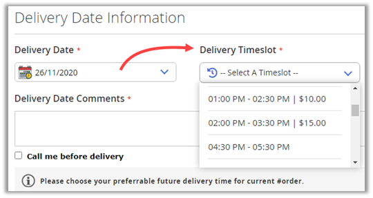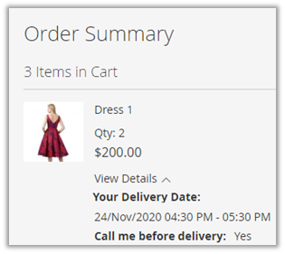 Once the customer ordered by selecting their preferable deliver date with the time slot, they can check delivery date and its related options from the “Order Summary“.