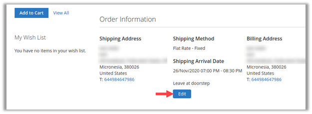 Note: The customer will get the Delivery Date options as per the backend configuration in the Delivery Date and if the order is shipped, the customer will not get the Edit delivery date option.