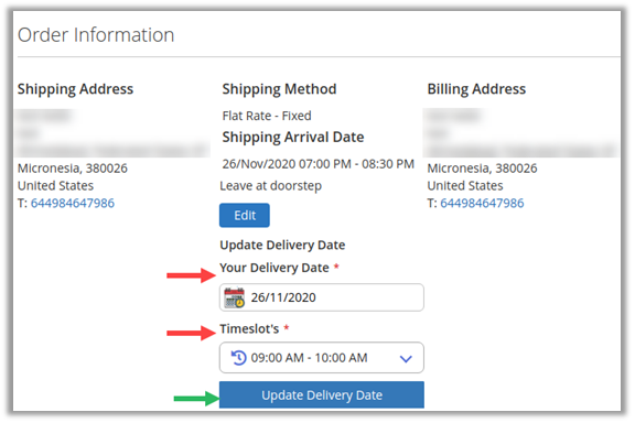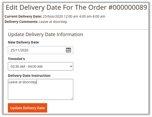 By selecting the Delivery Date, Time Slot & inserting the comments, click on the Update Delivery Date option.