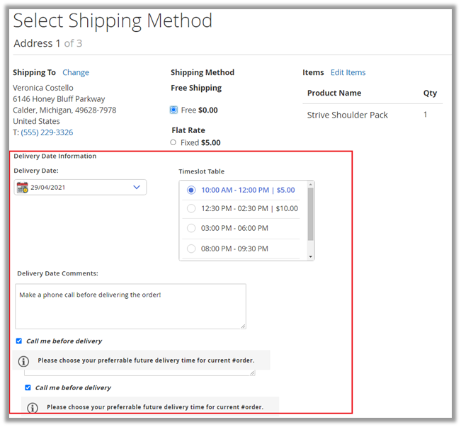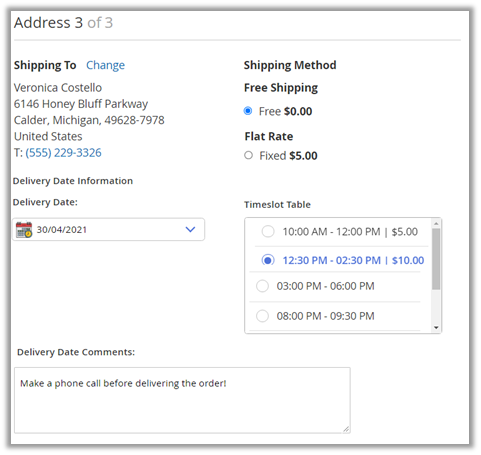 Similarly, the customers can select the Delivery Date for other orders (products) under the shipping address.