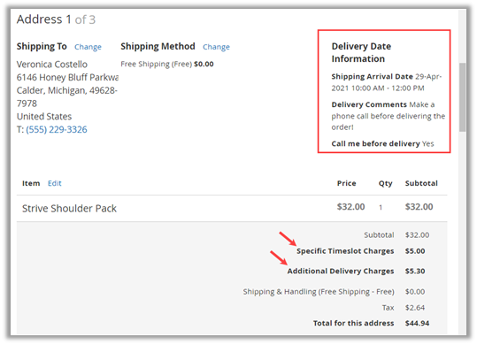 After selecting the Delivery date options, the customers can proceed for the payment and before that they can review the order detail with deliver date information.