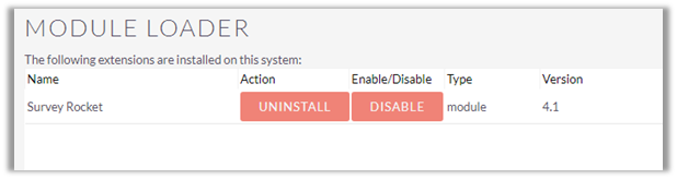 Click on ‘Commit’ button to finish the installation. After successful installation, you can see ‘Survey Rocket’ Plug-in in Installed plug-in list on Module Loader page.