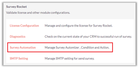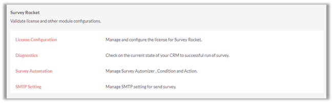 Log-in to your SuiteCRM as admin and go to Administrator Page. You can see the ‘Survey Rocket’ section on this page.