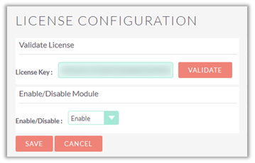 Enter License activation key provided by AppJetty. Validate your license by clicking on the ‘Validate’ button.