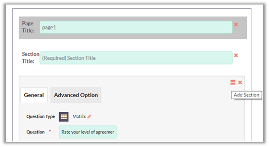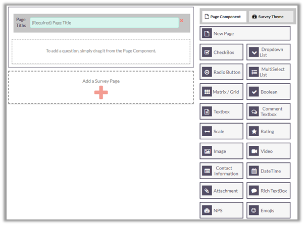 To add a question to a page, just Drag & Drop that question type to the survey page