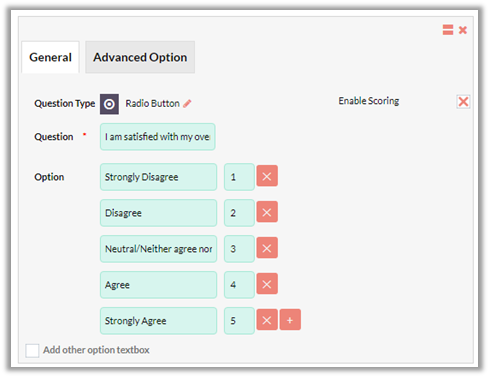 Check the ‘Add other option textbox’ box to add an extra blank field along with the answer choices.