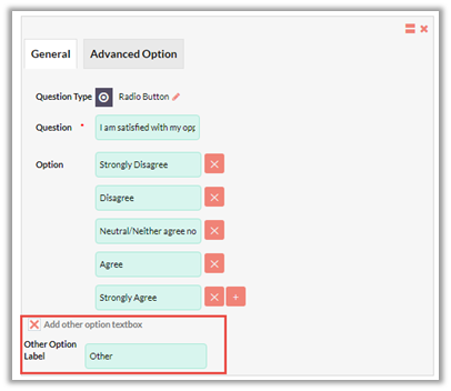 To allow respondents to give some other answer than those mentioned in the options, the ‘Other’ option feature can be used.