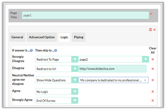 There are different logic operators available within the Logic Operator dropdown based on question type selected.