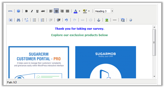 | Rich Text Box | Add additional text in a survey form and edit them using the rich text box option. |