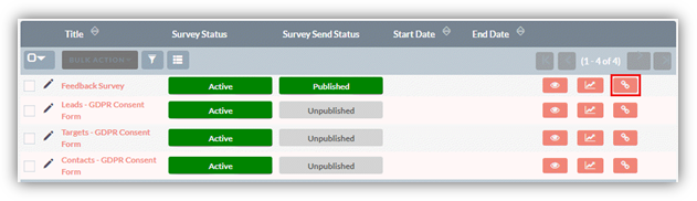 You can also copy survey link by clicking on Copy Survey Link button available in the list view of the polls.