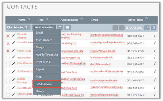Email Reports – Displays report for surveys sent through emails (Existing CRM Records)