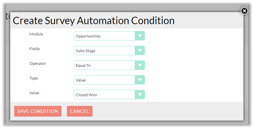 Now, create conditions for the automation to trigger. When these conditions are met, the survey will be automatically sent to the chosen respondents.