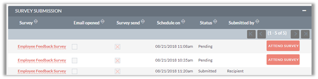 Individual Report displays the list of responses. It displays the module, type of submission, survey send date and survey submission date.