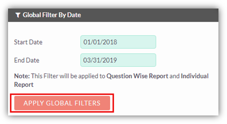 Global Filters are available and get applied to question wise report and individual report.