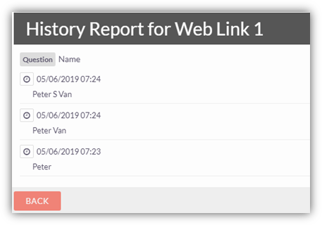 On clicking history button, you get list of all previous answers along with time and date for each particular question if there are any.
