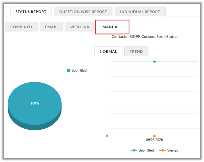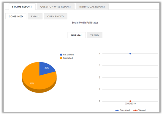 Normal report has a pie-chart depicting the percentage of users who have submitted the survey and those who haven’t.