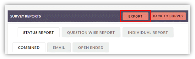 All available reports like status report, question wise report along with their different types like combined, email or open ended can be exported by clicking on Export button.