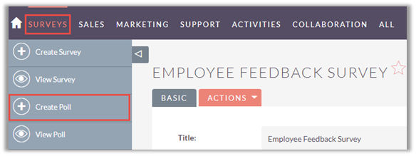 To create a Poll, select ‘Create Poll’ option from the Survey Module dropdown.